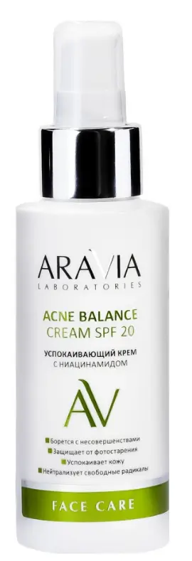 ARAVIA Laboratories успокаивающий крем с ниацинамидом acne balance cream spf 20 100 мл