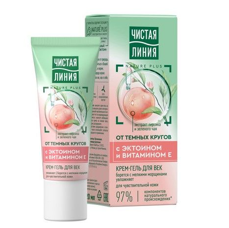 Крем-гель для век от морщин Чистая Линия c эктоином и витамином Е – это эффективное средство, которое обеспечивает оптимальный уход для кожи вокруг глаз. Гипоаллергенный увлажняющий крем-гель с экстрактами персика и зеленого чая на 97% состоит из компонентов натурального происхождения*. Крем для кожи вокруг глаз содержит эссенцию 5 экстрактов и масел NATURE PLUS (экстракты вербены и пиона, масла миндаля, льна и оливы). Крем от темных кругов под глазами обеспечивает мгновенное увлажнение кожи, повышает ее эластичность и упругость. Гипоаллергенный крем против морщин с эктоином и витамином Е поддерживает водный баланс кожи, оказывает мощное антиоксидантное действие. Крем Чистая Линия увлажняющий борется с темными кругами и мелкими морщинами вокруг глаз. Крем питательный способствует выравниванию тона кожи, избавляет от тусклости. Крем с витамином Е и эктоином питает, увлажняет и смягчает кожу. Крем-гель для век увлажняющий поддерживает собственную защиту кожи от воздействия внешних стресс-факторов. Это особенно важно для чувствительной кожи, которая нуждается в защите от обезвоживания.