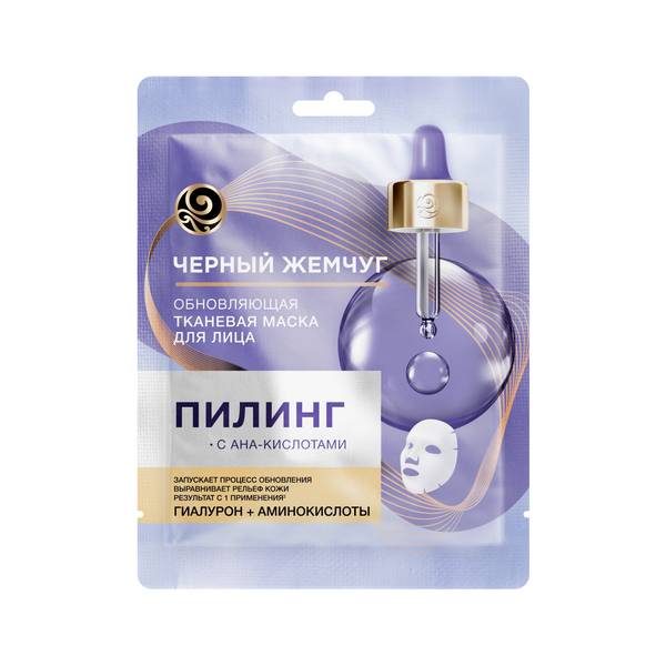 Черный жемчуг тканевая маска для лица обновляющая мягкий пилинг с комлексом aha кислот гиалуроном 1 шт
