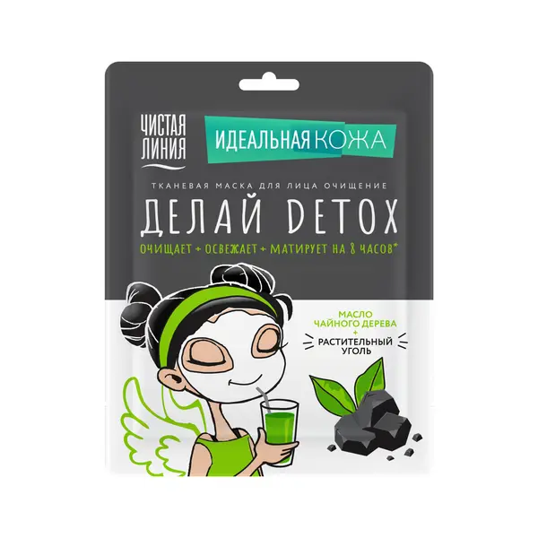 Чистая Линия идеальная кожа тканевая маска для лица очищение делай детокс с углем и маслом чайного дерева 1 шт