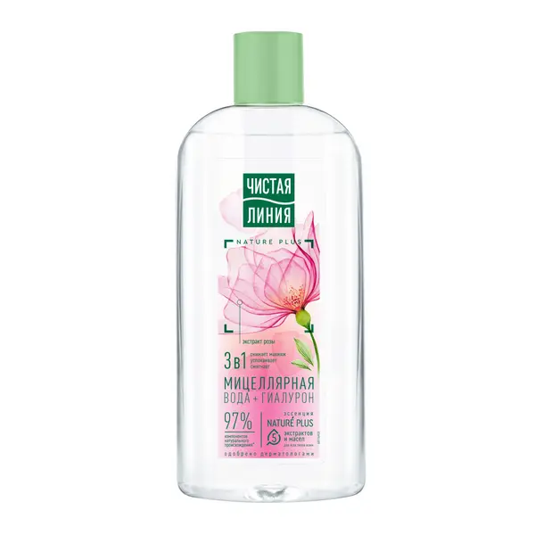 Чистая Линия мицеллярная вода 3в1 для всех типов кожи с гиалуроном и экстрактом розы успокаивающая 400 мл