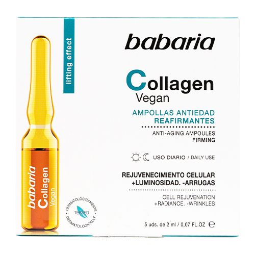 Ампулы с коллагеном Babaria Vegan обеспечивают антивозрастной и лифтинговый эффект, омолаживая кожу и повышая ее упругость и эластичность. С их помощью вы сможете уменьшить длину и глубину морщин в области "гусиных лапок" и избавиться от дряблости кожи, возвращая ей свежесть и сияние. Мы гордимся тем, что коллаген в наших ампулах не имеет животного происхождения. Благодаря современным исследованиям, мы извлекли этот активный ингредиент из дикорастущих растений, заботясь о вашей коже и окружающей среде. Нанесите на очищенную кожу лица, шеи и декольте вечером перед обычной процедурой. Массируйте кончиками пальцев до полного впитывания. Для усиления эффекта рекомендуется использовать сыворотку и крем с коллагеном Babaria. После вскрытия ампулы мы рекомендуем использовать содержимое в течение 24 часов, чтобы сохранить все его свойства. Для местного применения. Не предназначен для инъекций.