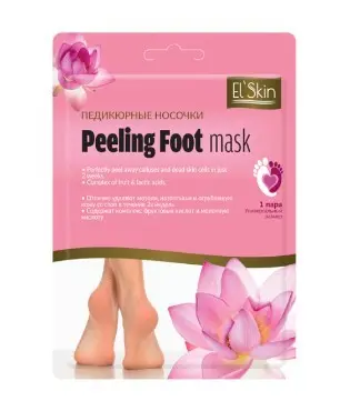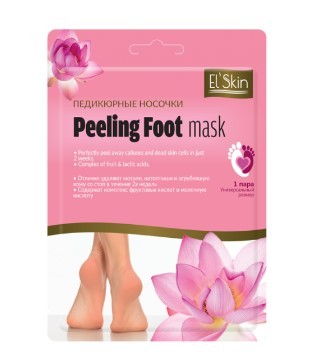 Педикюрные носочки El’Skin — безопасное удаление мозолей, натоптышей, трещин и огрубевшей кожи! Натуральные фруктовые экстракты яблока, апельсина, лимона и молочная кислота стимулируют естественный процесс отторжения мертвых тканей, что вызывает отслаивание огрубевшей кожи и натоптышей.