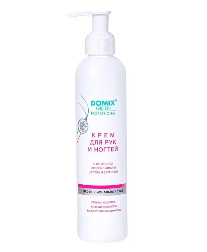 Domix крем для рук и ногтей с кератином, маслом чайного дерева и коллоидным серебром 250мл