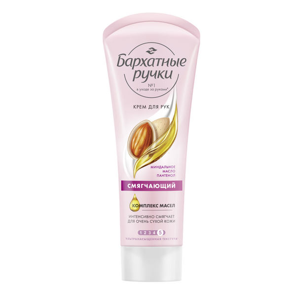Бренд Бархатные Ручки представляет крем для рук Смягчающий. Насыщенный питательный крем ухаживает за руками, разглаживает кожу, смягчая грубые участки и предотвращая их повторное появление. Дополнительно препятствует появлению заусенцев. Формула Silk Oil Elixir усиливает действие крема. Микромасла восстанавливают клетки кожи и в комплексе с протеинами шелка делают ее мягкой и нежной. Вследствие плотности рогового слоя, кожа ладоней быстро грубеет. Регулярное применение крема для рук, не менее 2-х раз в день, помогает предотвратить появление грубых участков и сохранить мягкость кожи. Формула Silk Oil Elexir представляет собой комплекс, состоящий из микромасел и протеинов шелка. Благодаря своему размеру (до 10 мкм), эти частицы масел способны проникать внутрь эпидермиса, не нарушая липидный барьер, и доставлять питательные вещества клеточкам кожи. МАСЛО КАКАО оказывает смягчающее, заживляющее и тонизирующее действие. Помогает при лечении ожогов, высыпаний на коже. Защищает кожу от обветривания в холодное время года.