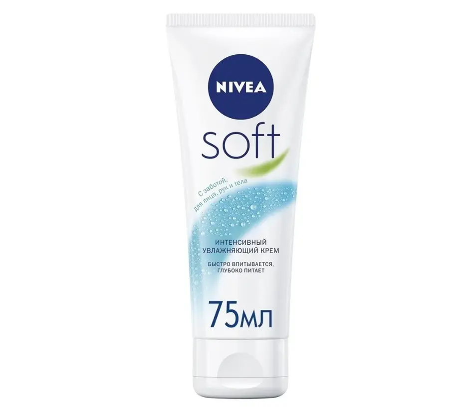NIVEA Soft - крем на масляно-водной основе, подходит для нанесения на кожу лица, рук и тела.