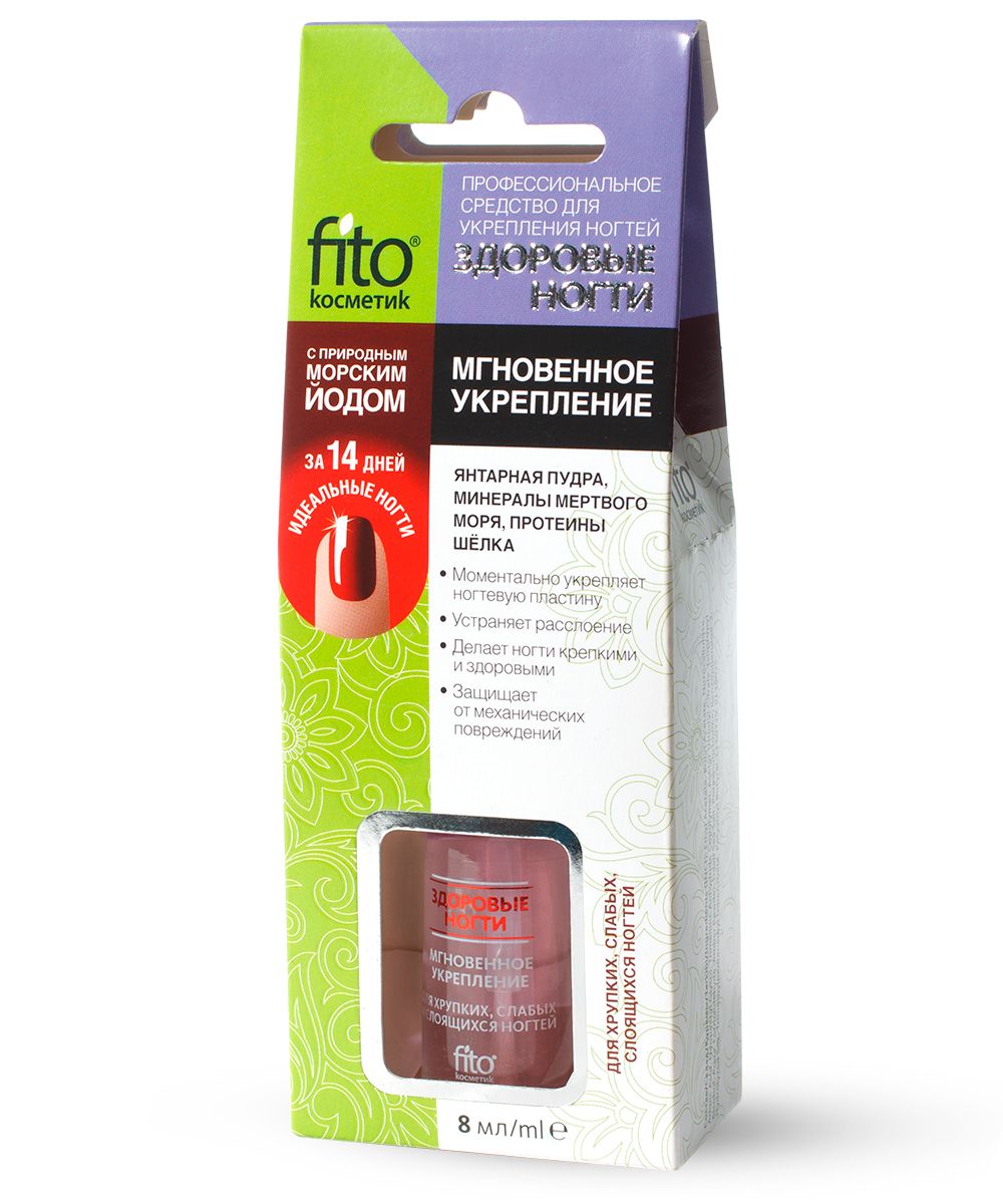 Эксклюзивная формула на основе природного йода создает ультра прочное покрытие на поверхности ногтевой пластины, янтарная пудра и минералы мертвого моря мгновенно укрепляют ногти, придают им твердость и прочность, устраняют расслоение, протеины шелка питают и увлажняют ногти, делают их гладкими и эластичными. Для достижения максимального эффекта используйте средство ежедневно в течение двух недель.