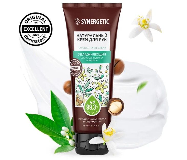 Натуральный крем для рук SYNERGETIC "Увлажняющий" максимально увлажняет и восстанавливает естественный водный баланс кожи, повышая ее эластичность и оказывая моделирующий эффект. Натуральный пребиотик и природный антиоксидант трегалоза нормализует и сохраняет естественный микробиом кожи. Бисаболол успокаивает и помогает восстановить барьерные функции кожи, снимает раздражения и покраснения, повышает упругость, способствует более глубокому проникновению активных веществ в глубокие слои кожи. Масла макадамии и карите интенсивно питают, оставляя ощущение необыкновенной мягкости и комфорта. Экстракт нероли активно увлажняет сухую и обезвоженную кожу, восстанавливает её эластичность. Сок алоэ вера способствует восстановлению гидробаланса, обладает антиоксидантным и противовоспалительным свойствами, активно увлажняет и способствует регенерации клеток, помогая восстановить упругость кожи, вернуть ей свежий и сияющий вид.