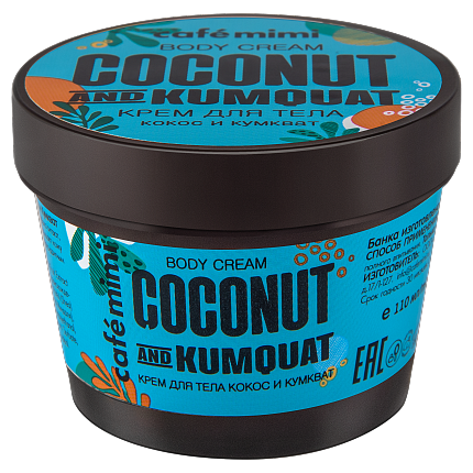 Позаботься о своей коже вместе с кремом для тела Кокос и Кумкват CAFÉ MIMI! Входящие в состав масла Кокоса и Миндаля глубоко питают, увлажняют и смягчают кожу. Экстракт из плодов Кумквата насыщает кожу витаминами и минералами, обладает тонизирующим и антиоксидантным действиями, придаёт коже упругость и мягкость.