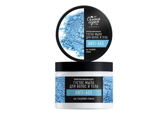 Особая серия омолаживающее густое мыло для волос и тела на голубой глине anti age 500 мл