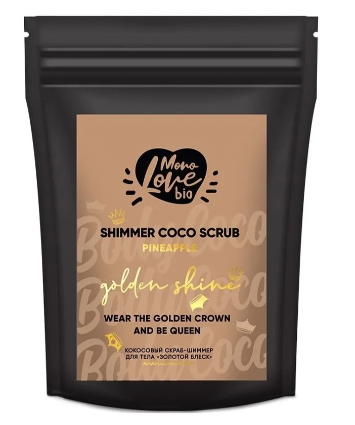 MonoLove Bio скраб-шиммер для тела Золотой блеск ананас-кофеин 150г