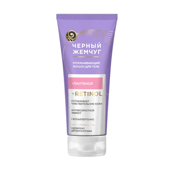 Лосьон для тела Черный Жемчуг Успокаивающий — новинка для качественного и бережного ухода за чувствительной кожей с антивозрастным эффектом. Успокаивающий лосьон для тела с гипоаллергенной формулой дарит ощутимый результат: +31% увлажнения через 2 недели применения’! Формула лосьона для тела после душа обогащена пантенолом и ретинолом. Компоненты оказывают восстанавливающее и омолаживающее действие: - Пантенол нормализует клеточный метаболизм, увлажняет, устраняет сухость и шероховатость, способствует восстановлению кожи. - Ретинол ускоряет процесс обновления клеток кожи, участвует в восстановлении клеточного матрикса. Заботьтесь о коже и управляйте возрастными изменениями с помощью эффективной косметики от бренда Черный Жемчуг: - Лосьон для тела женский успокаивает чувствительную кожу. - Особая'' формула средства укрепляет липидный барьер кожи в пять раз и замедляет проявление признаков старения. - Тающая текстура лосьона для тела с комплексом масел и соком алоэ вера дарит мягкость и комфорт, подходит для обезвоженной кожи в отопительный сезон. - В составе средства нет отдушек. Лосьон для тела гипоаллергенный станет оптимальным решением для очень сухой и чувствительной кожи. Средство можно использовать после пребывания на солнце, а также после эпиляции. Лосьон одобрен дерматологами и подходит для ежедневного ухода за телом.