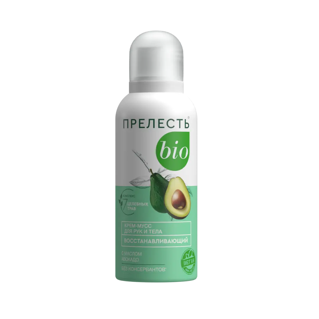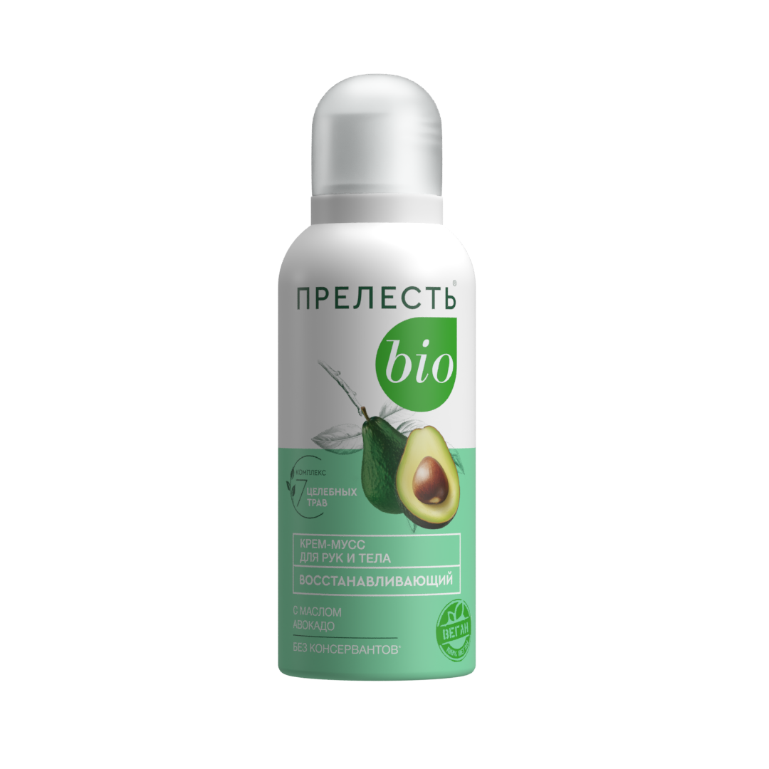 Крем-мусс Прелесть БИО имеет воздушную текстуру, легко и приятно распределяется по коже, быстро впитывается и не оставляет неприятной липкости или пленки. Он создает ощущение комфорта и увлажнения, делая кожу более мягкой и гладкой. ∙ Увлажняет и питает нежную кожу. Восстанавливает защитный барьер кожи. ∙ Защищает кожу от негативного воздействия окружающей среды. ∙ Идеально подходит не только для кожи рук, но и для тела. ∙ Без консервантов, минеральных масел, силиконов, парабенов и красителей.* Наслаждайтесь здоровой, сияющей кожей каждый день! Способ применения: перед использованием хорошо встряхнуть баллон. Держа баллон вертикально, выдавить необходимое количество крема и легкими движениями нанести до полного его впитывания на чистую кожу. Новый баллон встряхивать 20-25 с и опробовать на бумагу 2-3с. Применять крем при температуре не ниже + 10°С. Меры предосторожности: Использовать только по назначению согласно способу применения! Избегать попадания в глаза, при попадании в глаза тщательно промыть их водой! Баллон находится под давлением! Не вскрывать и не сжигать баллон даже после использования! Предохранять от воздействия прямых солнечных лучей и нагревания выше 50 °С! ОГНЕОПАСНО! Не распылять вблизи открытого огня и раскаленных предметов! Не курить! Не разбирать и не давать детям! Хранить в недоступных для детей местах! В случае возникновения аллергической реакции прекратить применение и обратиться к врачу! После использования или по окончании срока годности продукцию утилизируют как бытовой отход.