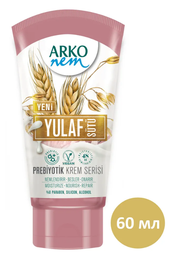 Серия Arko Nem с пребиотиками и овсяным молочком содержит натуральные веганские ингредиенты, которые эффективно увлажняют и питают кожу. Крем помогает защитить кожу от факторов окружающей среды и восстановить здоровый вид, поддерживая её защитные барьерные свойства. Благодаря чистой и в то же время сильной формуле, не содержащей парабенов, силикона и спирта, крем ARKO Nem обеспечивает коже увлажняющий эффект на протяжении 48 часов.