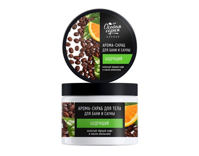 Особая серия арома скраб для тела для бани и сауны бодрящий молотый черный кофе и масло апельсина 500 мл