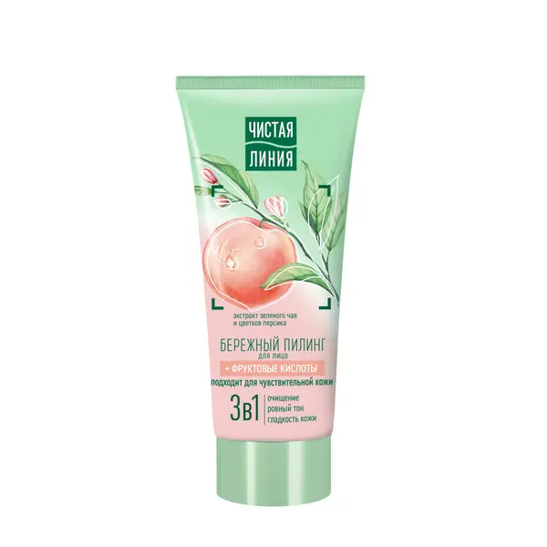 Попробуйте новинку от бренда Чистая Линия – бережный пилинг для домашнего ухода с фруктовыми кислотами. Он действует сразу в 3-х направлениях: очищает, выравнивает тон кожи и придает гладкость. • Фруктовые кислоты оказывают на кожу отшелушивающее, увлажняющее, обновляющее действие, а также стимулируют синтез коллагена. • Зеленый чай тонизирует и увлажняет, защищает от преждевременного старения, улучшает цвет лица и состояние кожи любого типа и возраста. • Экстракт персика увлажняет и смягчает. Свойства продукта подтверждены потребительским тестированием*. Так, 94% респондентов отметили, что пилинг интенсивно очищает, после использования кожа становится более нежной, мягкой и гладкой; 95% – выравнивает рельеф кожи. Подходит даже для чувствительной кожи.
