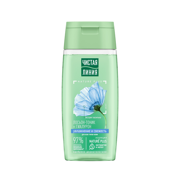 Чистая Линия лосьон тоник увлажнение и свежесть для всех типов кожи с гиалуроном и экстрактом василька 100 мл