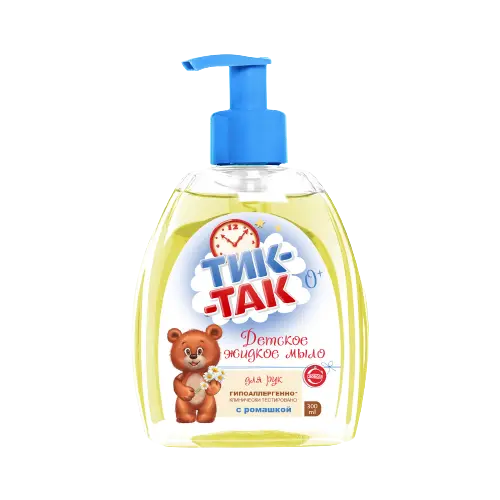 Детское жидкое мыло Тик-Так специально предназначено для мягкого и бережного ухода за чувствительной кожей ребенка .