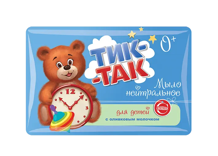 Детское нейтральное мыло Тик-Так с оливковым молочком вырабатывается из высококачественных натуральных тропических масел.
