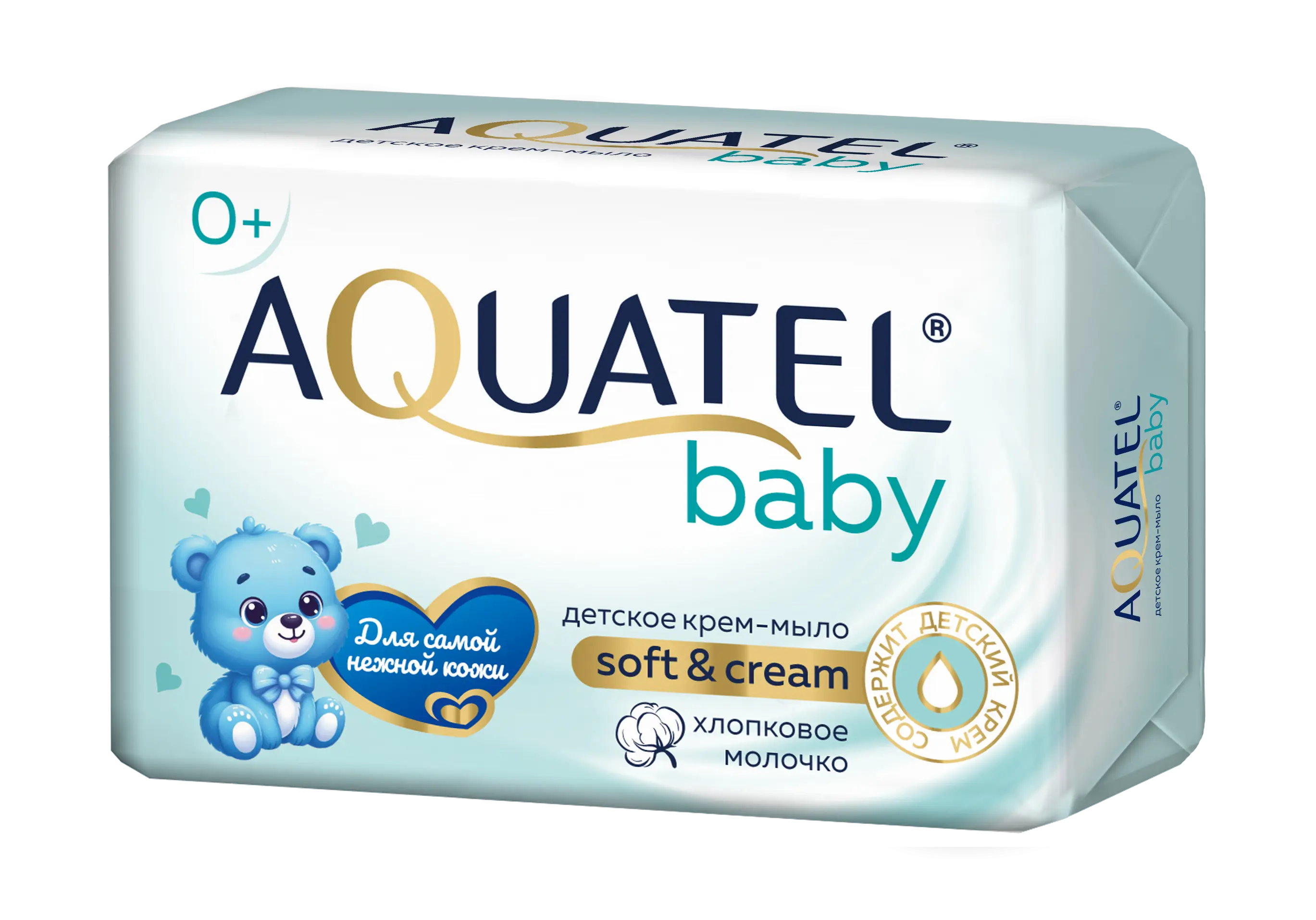 Натуральное детское крем-мыло «AQUATEL Baby» хлопковое молочко создано для самой нежной кожи. Уникальная формула натуральных компонентов, детского крема и хлопкового молочка обеспечит мягкое очищение нежной коже малыша. Крем-мыло гипоаллергенно, клинически протестировано. Содержит в составе крем и экстракт хлопка. Обладает мягкой рецептурой и натуральной основой, не содержит красителей. Предназначено для малышей с самого рождения.