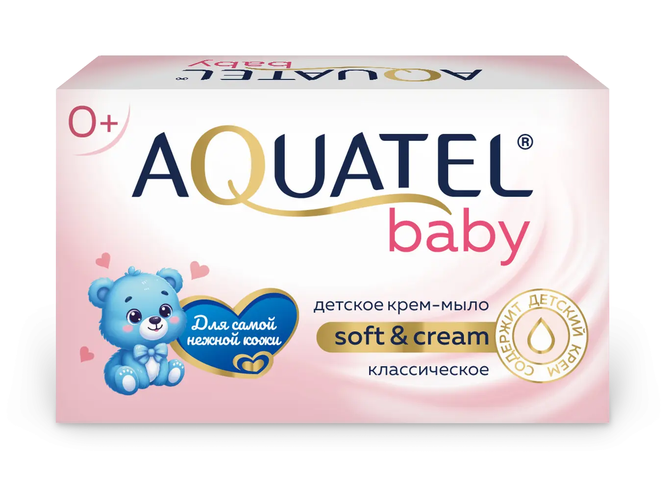 Натуральное детское крем-мыло «AQUATEL Baby» создано для самой нежной кожи. Уникальная формула натуральных компонентов, детского крема и хлопкового молочка обеспечит мягкое очищение нежной коже малыша. Крем-мыло гипоаллергенно, клинически протестировано. Содержит в составе крем и экстракт хлопка. Обладает мягкой рецептурой и натуральной основой, не содержит красителей. Предназначено для малышей с самого рождения.