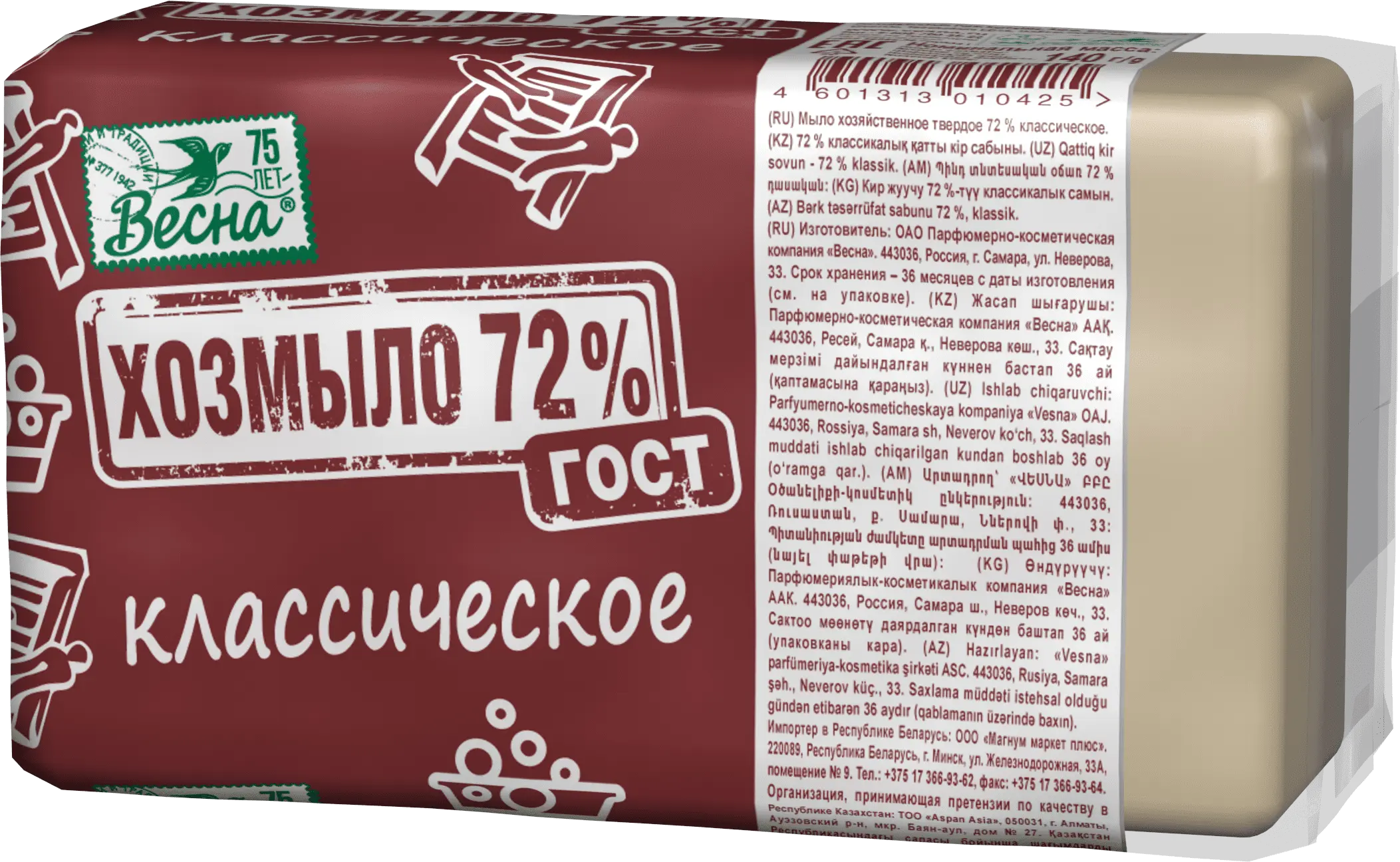 ВЕСНА хозмыло 72% гост классическое в пленке 140 г