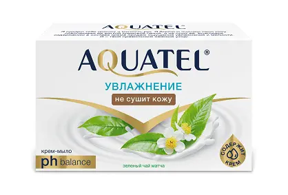 Уходовая линейка средств Aquatel подарит красоту и мягкость рук. Твердое крем-мыло бережно очистит кожу, а благодаря содержанию в составе крема - придаст ощущение длительного увлажнения и мягкости. Aquatel - деликатный нежный уход с ароматом зеленого чая! Подходит для лица, рук и тела.