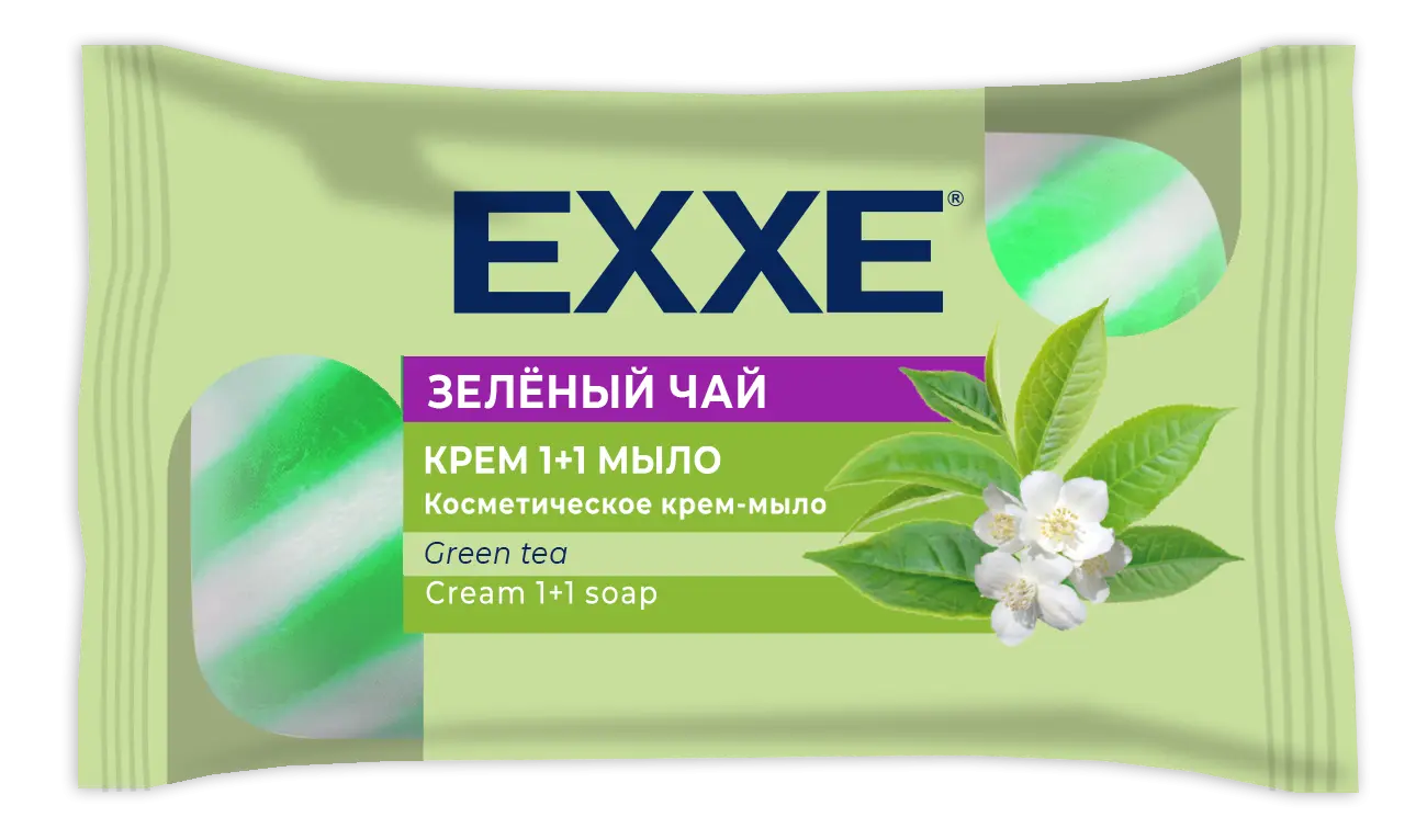 Exxe косметическое крем-мыло 1+1 зеленый чай 4 шт*75 г зеленое полосатое экопак