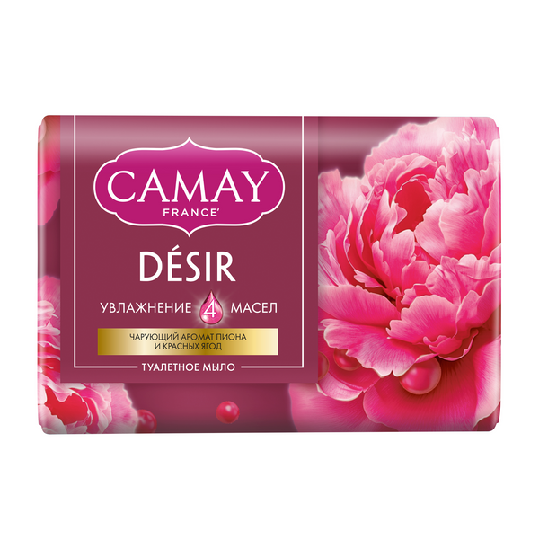 Camay мыло для рук твердое туалетное кусковое desir пион и красные ягоды 85 гр