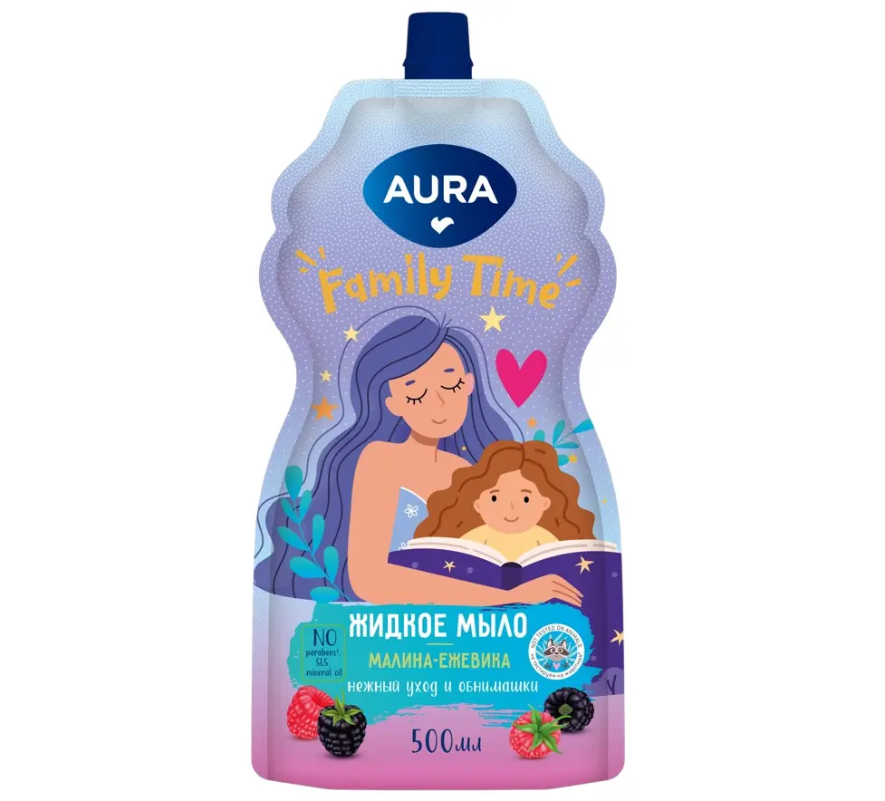 Aura жидкое мыло малина ежевика дой пак 500 мл