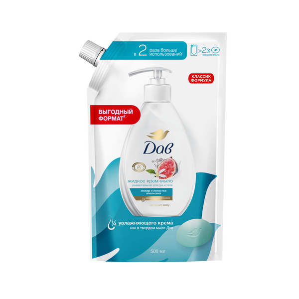 Дав крем мыло жидкое инжир и лепестки апельсина 500 мл сменный блок