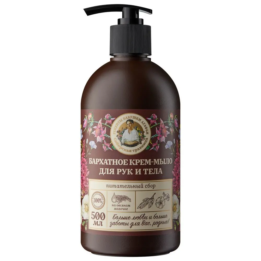Рецепты бабушки Агафьи бархатное крем мыло для рук и тела питательный сбор на овсяном молочке 500 мл