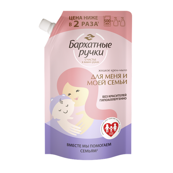 Бархатные Ручки крем мыло жидкое для меня и моей семьи 500 мл дой пак