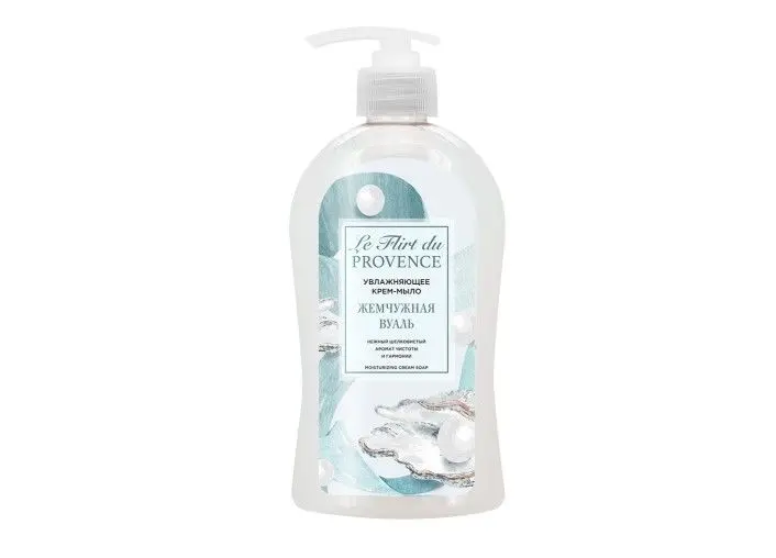 Увлажняющее крем-мыло бережно очищает руки и тело, образует воздушную пену с нежным пудрово-кремовым ароматом, не сушит кожу, создает ощущение чистоты и свежести. Перламутровая текстура жемчужного цвета в сочетании с элементами стиля французского Прованса в дизайне упаковки прекрасно дополнит интерьер вашей ванной комнаты или кухни.
