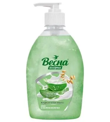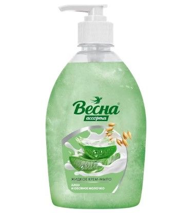 Жидкое крем-мыло ВЕСНА, "Ассорти алоэ и овсяное молочко", 500 мл. Крем-мыло жидкое обладает нежным ароматом, эффективно очищает руки от микробов и бережно ухаживает за ними. Увлажняет и насыщает кожу витаминами и полезными микроэлементами. Подходит для ежедневного применения всей семьи.