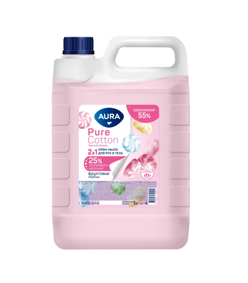 Aura крем мыло 2 в1 для рук и тела фруктовые леденцы канистра 5000 мл