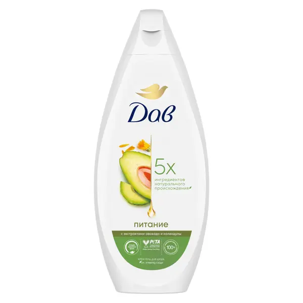 Оцените новинку от Dove – крем-гель для душа Ритуал красоты Питание. Биоразлагаемая формула* на 92% состоит из ингредиентов натурального происхождения**, мгновенно дарит коже естественное длительное питание. В составе продукта 5 ингредиентов натурального происхождения: бетаин мягко очищает, экстракт календулы восстанавливает кожу, стеариновая кислота питает, глицерин увлажняет, пребиотики необходимы для поддержания микробиома кожи. Содержит 100% увлажняющий компонент растительного происхождения***. Образует пышную пену и не требует большого расхода. Аромат авокадо и календулы расслабляет и позволяет снять накопленный стресс. Оцените всю обновленную коллекцию гелей для душа Dove, выберите идеальный продукт для себя и убедитесь, что ежедневные процедуры по уходу за собой становятся минутами наслаждения красотой и состоянием кожи после душа. Для наилучшего результата воспользуйтесь после приема душа молочком для тела Dove.