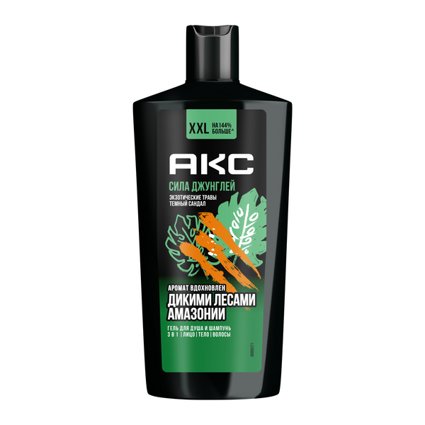 Акс гель для душа и умывания лица шампунь для волос мужской парфюмированный 3 в1 сила джунглей 610 мл