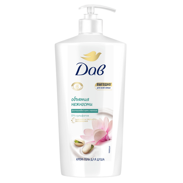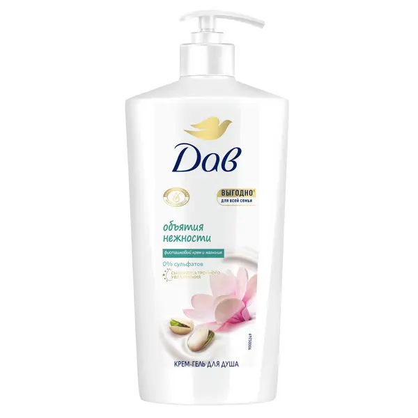 Дав крем гель для душа бессульфатный фисташковый крем и магнолия для всей семьи с сывороткой тройного увлажнения 610 мл