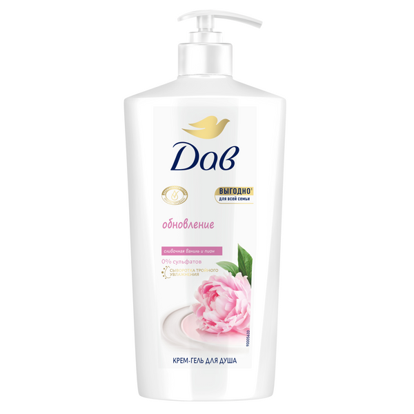 Дав крем гель для душа для всей семьи сливочная ваниль и пион бессульфатный с сывороткой тройного увлажнения 610 мл