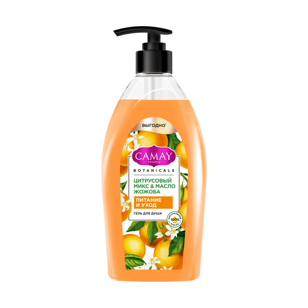 Отличный выбор для ухоженной и напитанной кожи без ощущения сухости и стянутости! Гель для душа Цитрусовый микс Camay – это утреннее очищение и уход за кожей. Бодрящий аромат с нотками ярких и манящих апельсина, мандарина и лимона способствует пробуждению и заряжает отличным настроением на весь день! Масла жожоба и макадамии в составе обладают антиоксидантным эффектом, глубоко питают*, обеспечивают уход и защиту, повышают мягкость и эластичность кожи. * в пределах рогового слоя.