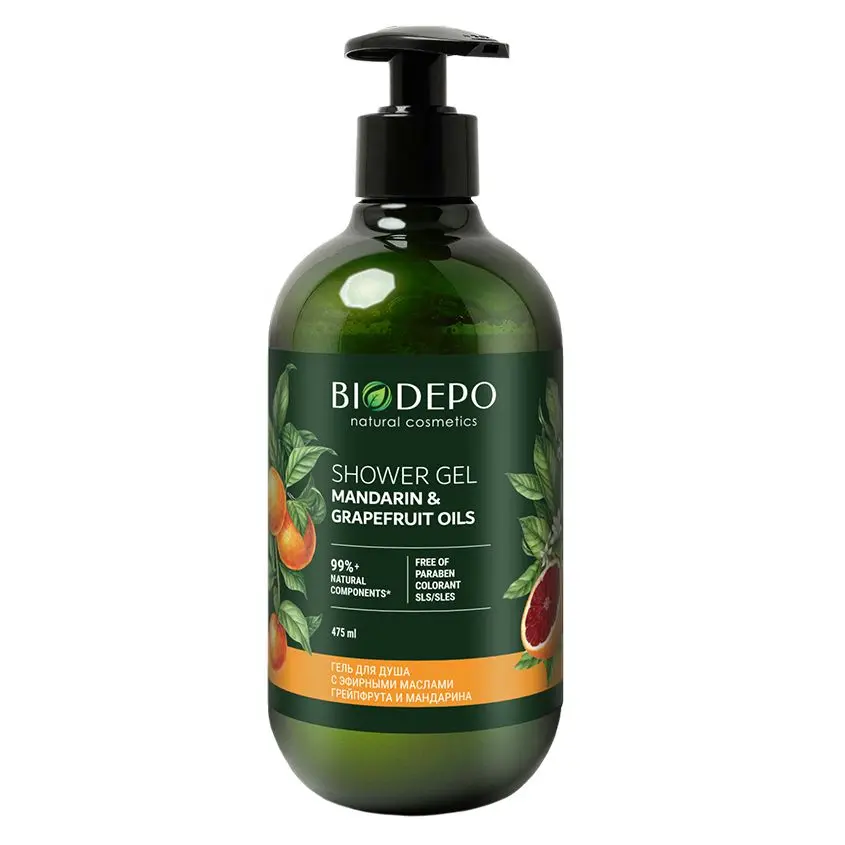 Biodepo гель для душа натуральный с эфирными маслами грейпфрута и мандарина 475 мл