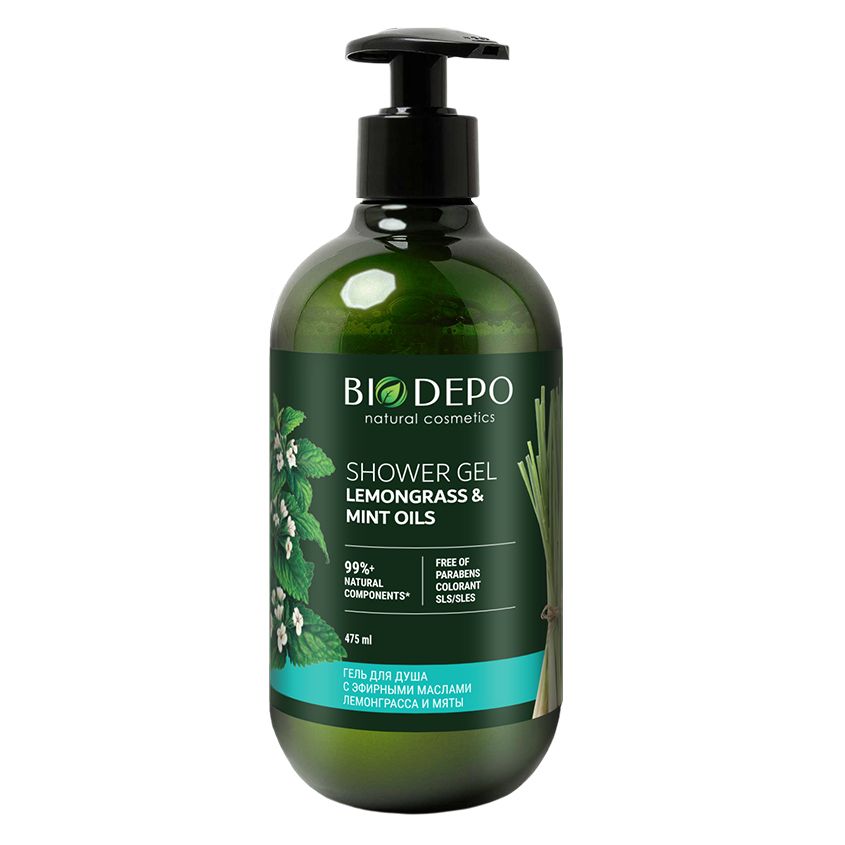Biodepo гель для душа натуральный с эфирными маслами лемонграсса и мяты 475 мл