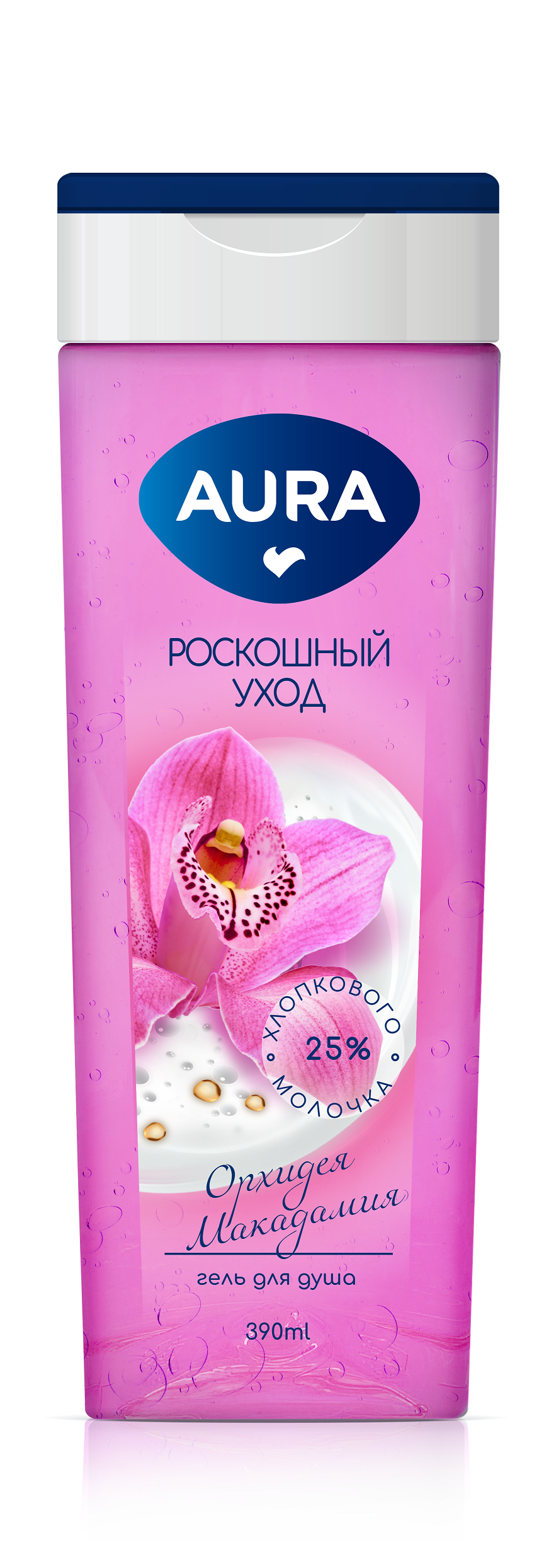 Aura гель для душа орхидея и макадамия флакон флиптоп 390 мл