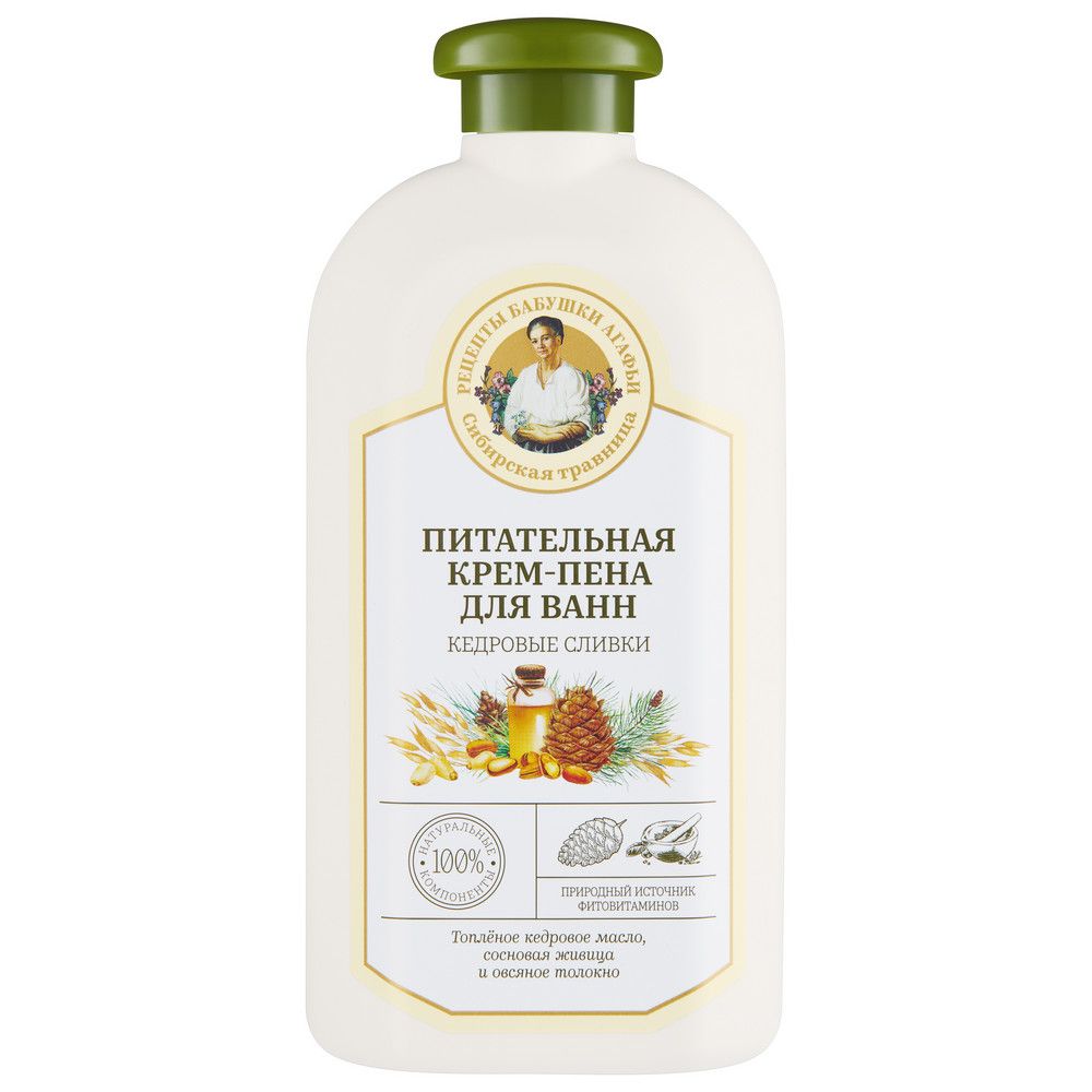 Густая крем-пена для расслабления и снятия усталости специально изготовлена. Она насыщает клетки кожи питательными веществами и живительной влагой, дарит приятный тёплый аромат и отдохнувший свежий вид.Топлёное кедровое масло глубоко питает и смягчает кожу, делая её необыкновенно бархатистой и нежной. Сосновая живица – мощный природный антисептик, повышает защитные функции кожи, увлажняет и тонизирует.Овсяное толокно витаминами группы В кожу обогащает, от сухости оберегает и состояние её улучшает.