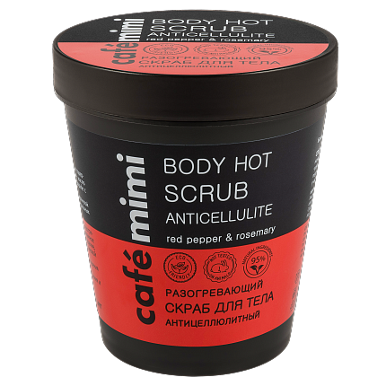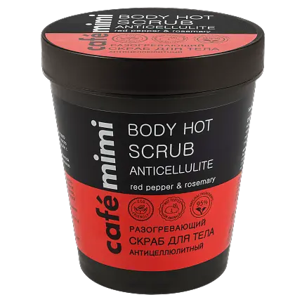 Скраб для тела с разогревающим эффектом содержит экстракт красного перца и эфирное масло розмарина - незаменимый помощник в борьбе с целлюлитом.