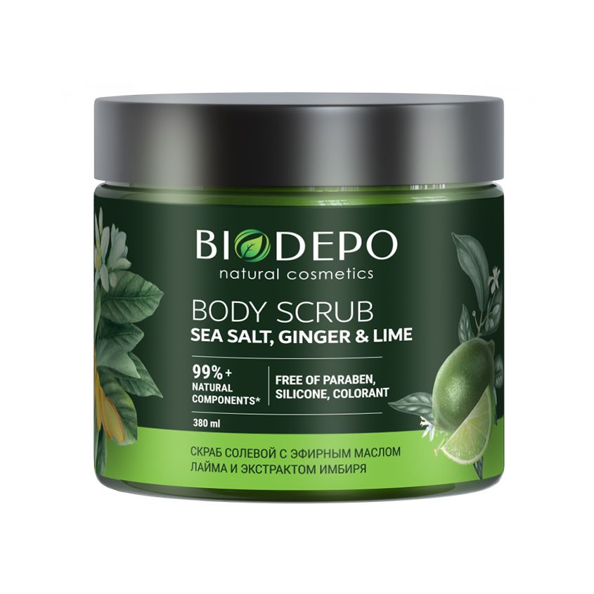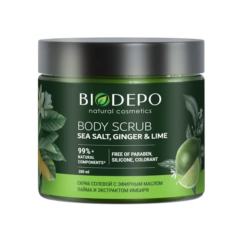 Biodepo скраб для тела натуральный с морской солью имбирем и лаймом 380 мл