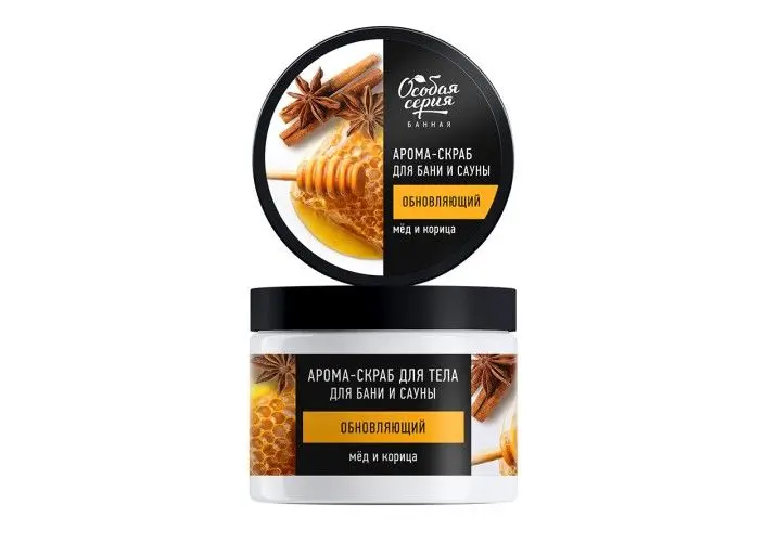 Особая серия арома скраб для тела для бани и сауны обновляющий мед и корица 500 мл