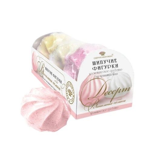 Ароматическое средство для ванн Десерт ванильные облака - это заключительная изящная нотка в процедуре принятия ванн десерт для ванны. Шипучая фигурка, шипя и пенясь, наполнит Вас целительным ароматом эфирного масла и мгновенно заворожит , прибавит настроения и добавит свою "изюминку" при принятии ванны. Условия хранения: хранить в защищенном от света месте при температуре не выше 25 градусов цельсия и относительной влажности не более 75% Применение: Чтобы процедура принесла максимум пользы, необходимо следовать простым правилам. Перед процедурой примите теплый душ и при необходимости очистите тело скрабом, чтобы удалить омертвевшие частицы кожи и открыть поры для свободного проникновения минералов. Если вы принимаете ванну курсом, температура воды для первых процедур должна быть около 36°C. Затем постепенно поднимайте ее до 38–39°C и к окончанию курса снова снижайте до 36°C. Если вы принимаете солевые ванны по мере необходимости, например чтобы снять стресс после длительного перелета или улучшить состояние кожи перед важным событием, выбирайте температуру, комфортную для вас.