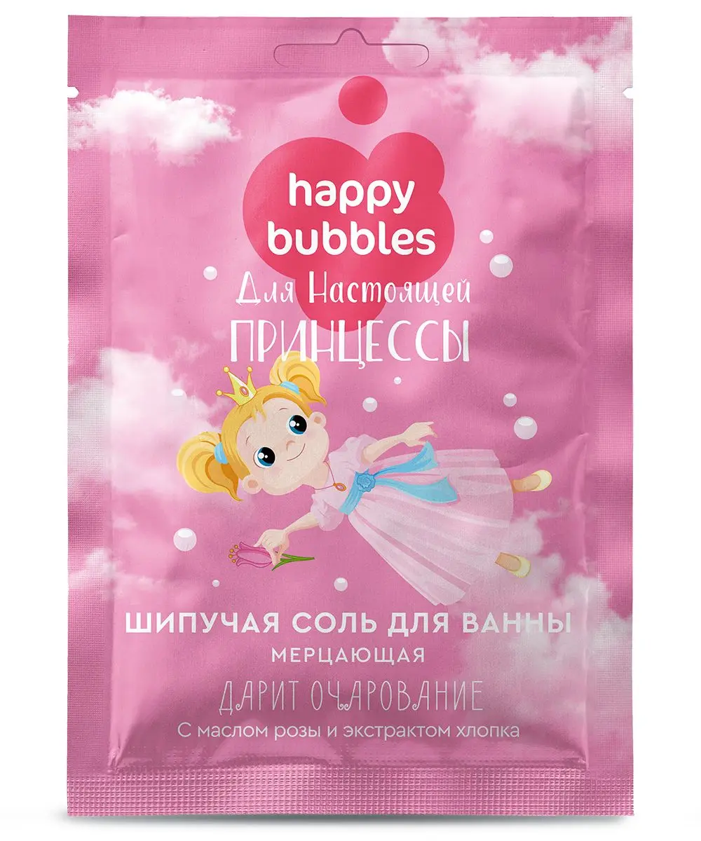Шипучая соль для ванны мерцающая для настоящей принцессы серии happy bubbles 100 г